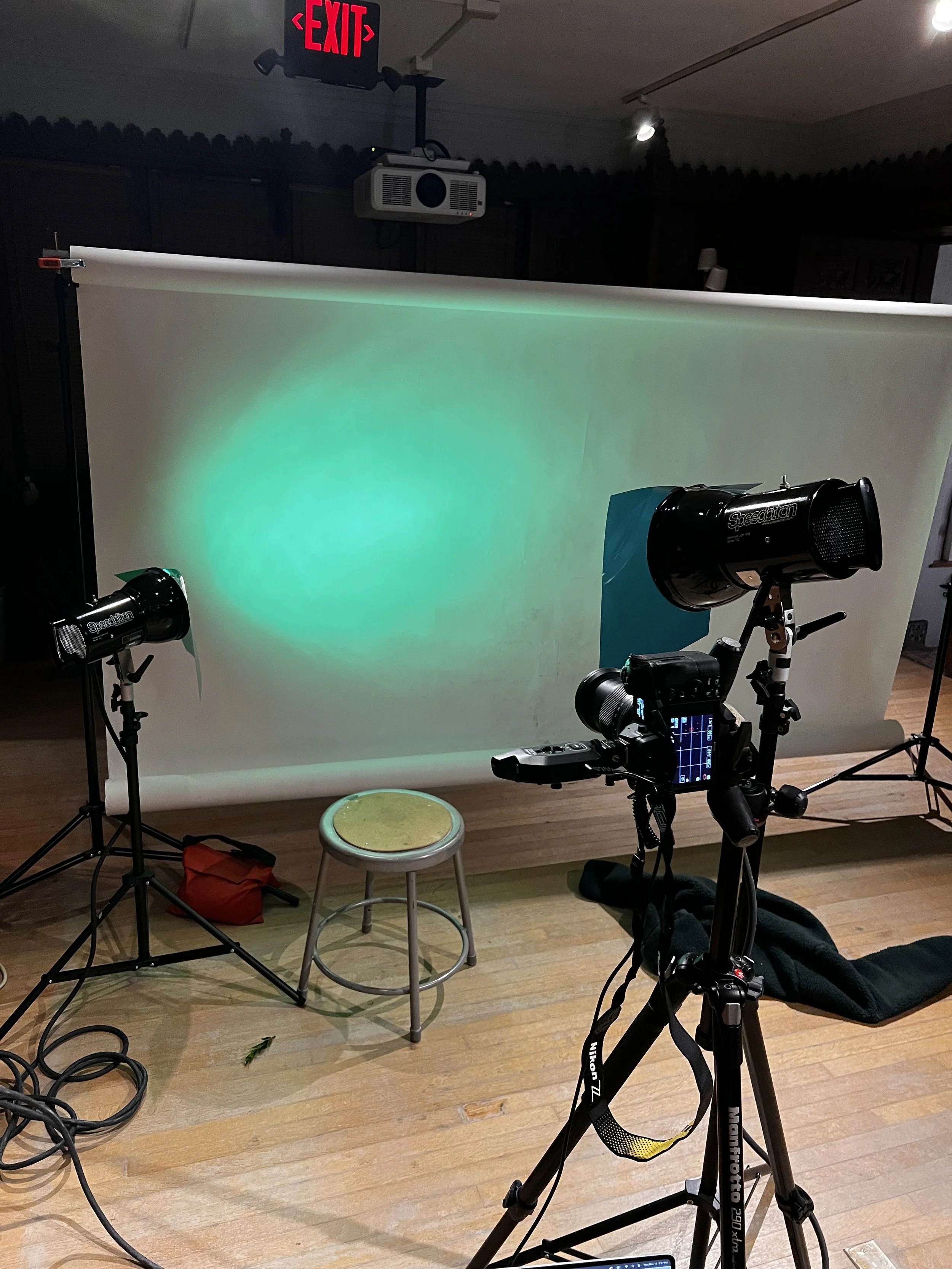 I've included an image that shows the lighting setup for my greenery shoot. I used two colored gels on separate lights to layer different shades of green, which cast dramatic shadows across the model’s face, creating the illusion that she was immersed in a forest.